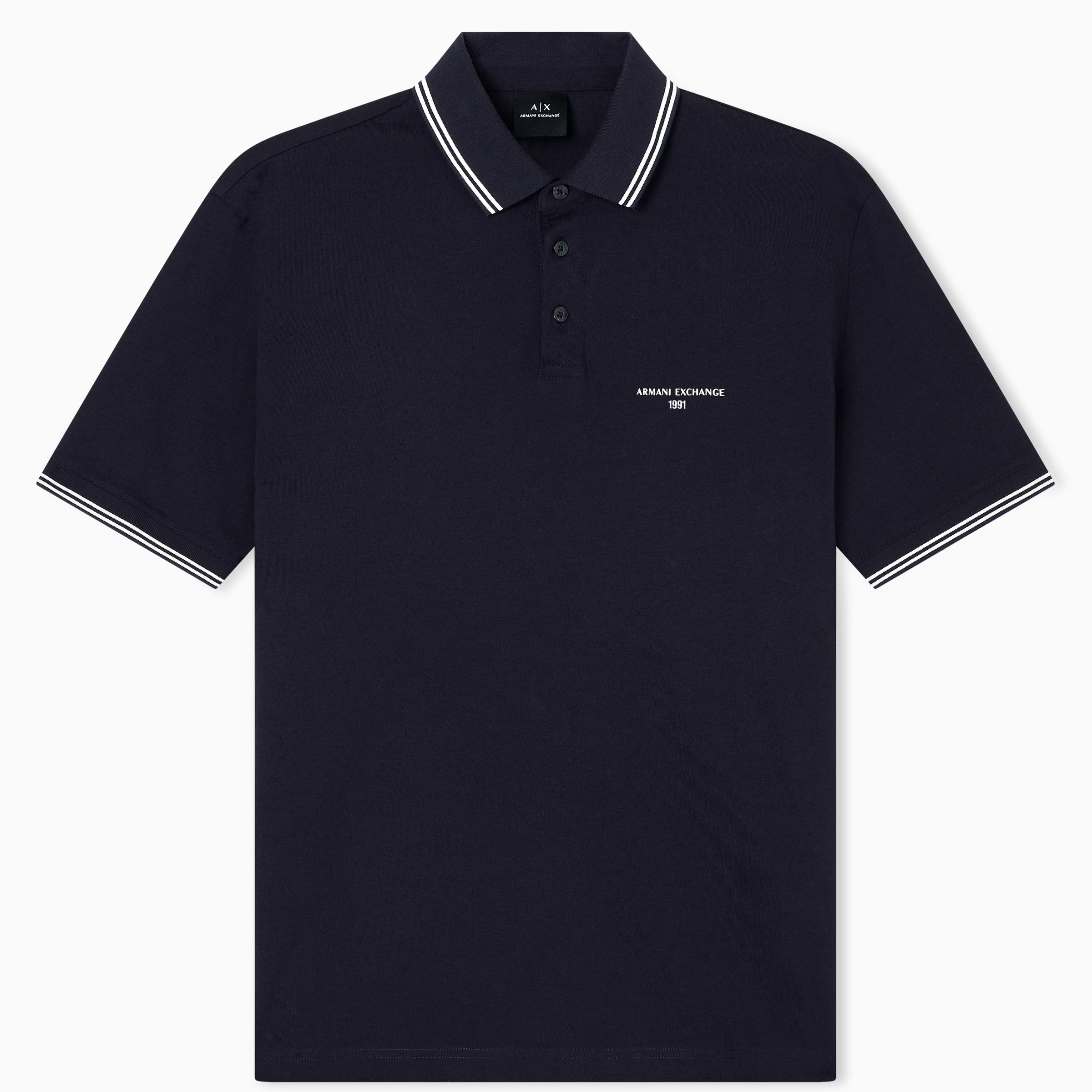 Polo shirt made of soft cotton jersey, a timeless classic reinterpreted with a cool and contemporary touch. This essential piece stands out for its refined details, such as the collar and sleeve edges with contrasting piping that add a graphic and sporty touch. The small Armani Exchange logo embroidered on the chest discreetly signs a versatile and always current look.