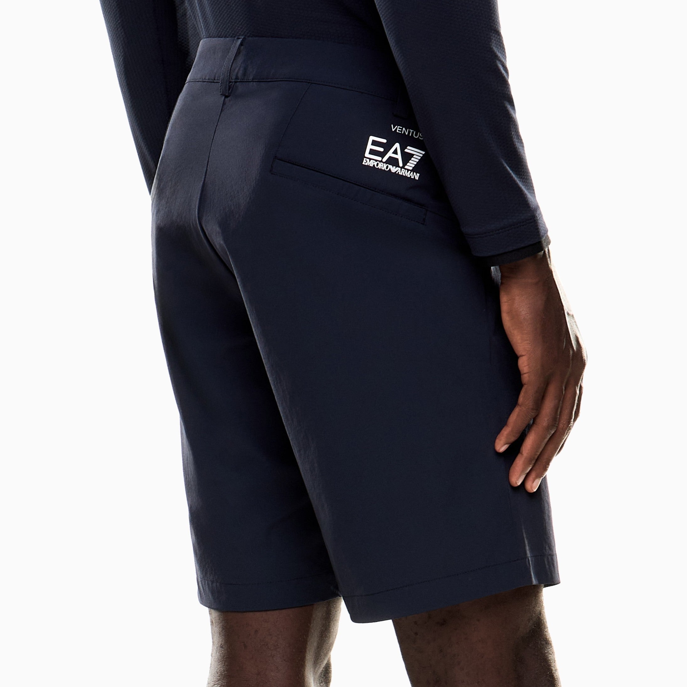 Bermuda shorts made of VENTUS7 technical fabric, which ensures optimal ventilation throughout your workout, guaranteeing a constant body temperature. Customised with a contrasting EA7 logo, side pockets and a button and a button and zip fastening, it is part of the Golf Pro collection. A selection dedicated to enthusiasts, who prefer a technical yet sophisticated look. Perfect pieces made from fabrics that combine comfort, performance and style, to accompany you on the golf course in different weather conditions. Stylistic yet functional details complete this versatile selection and ensure it is in step with the trends.