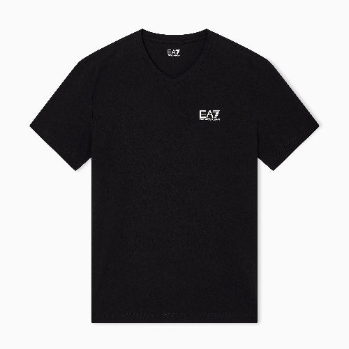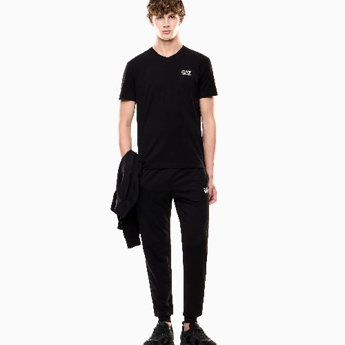 Short-sleeved, stretch-cotton jersey V-neck T-shirt with a minimalist look, perfect for completing various outfits, whether athletic or casual. Can be paired with the collection’s joggers or leggings for a complete look featuring comfort and EA7 style.