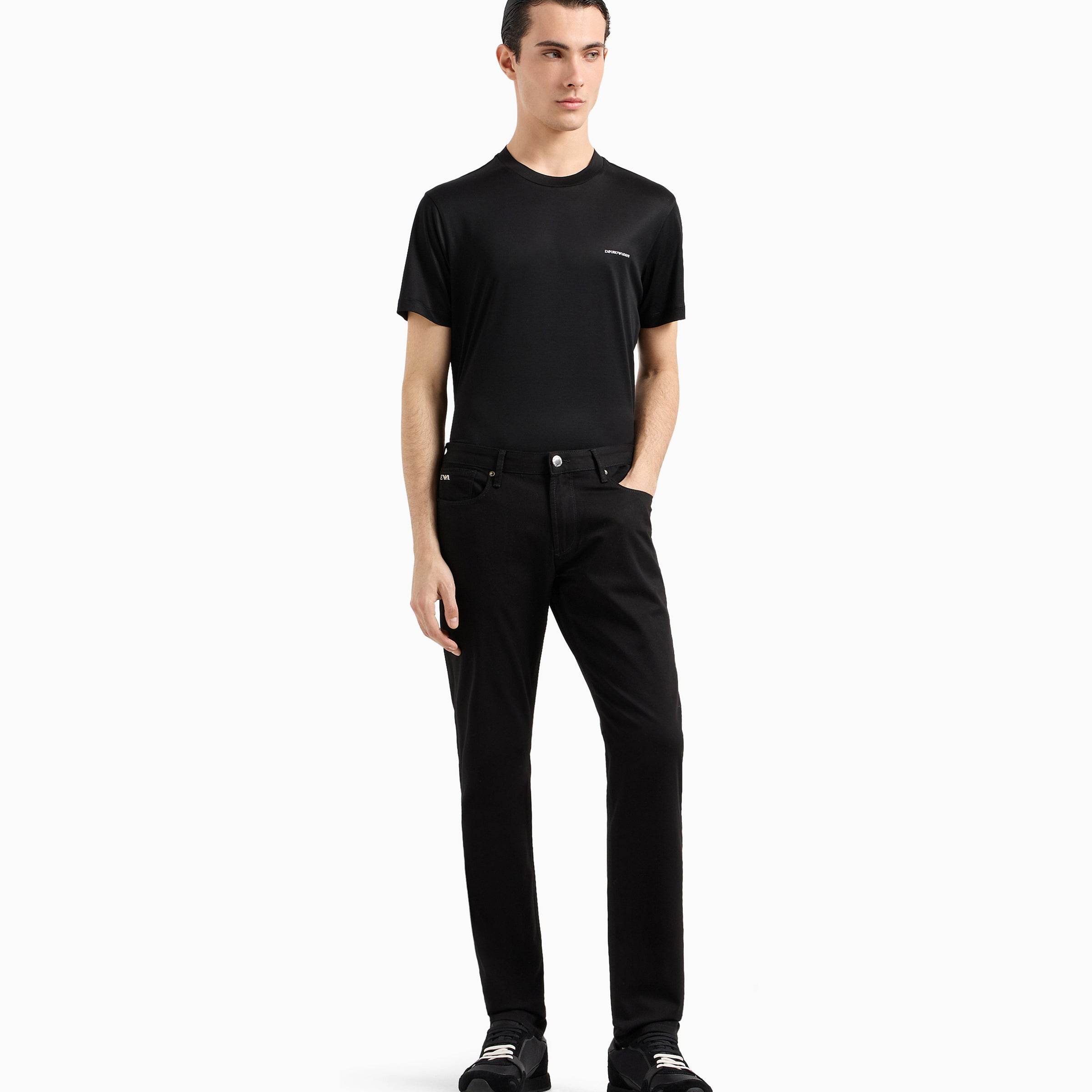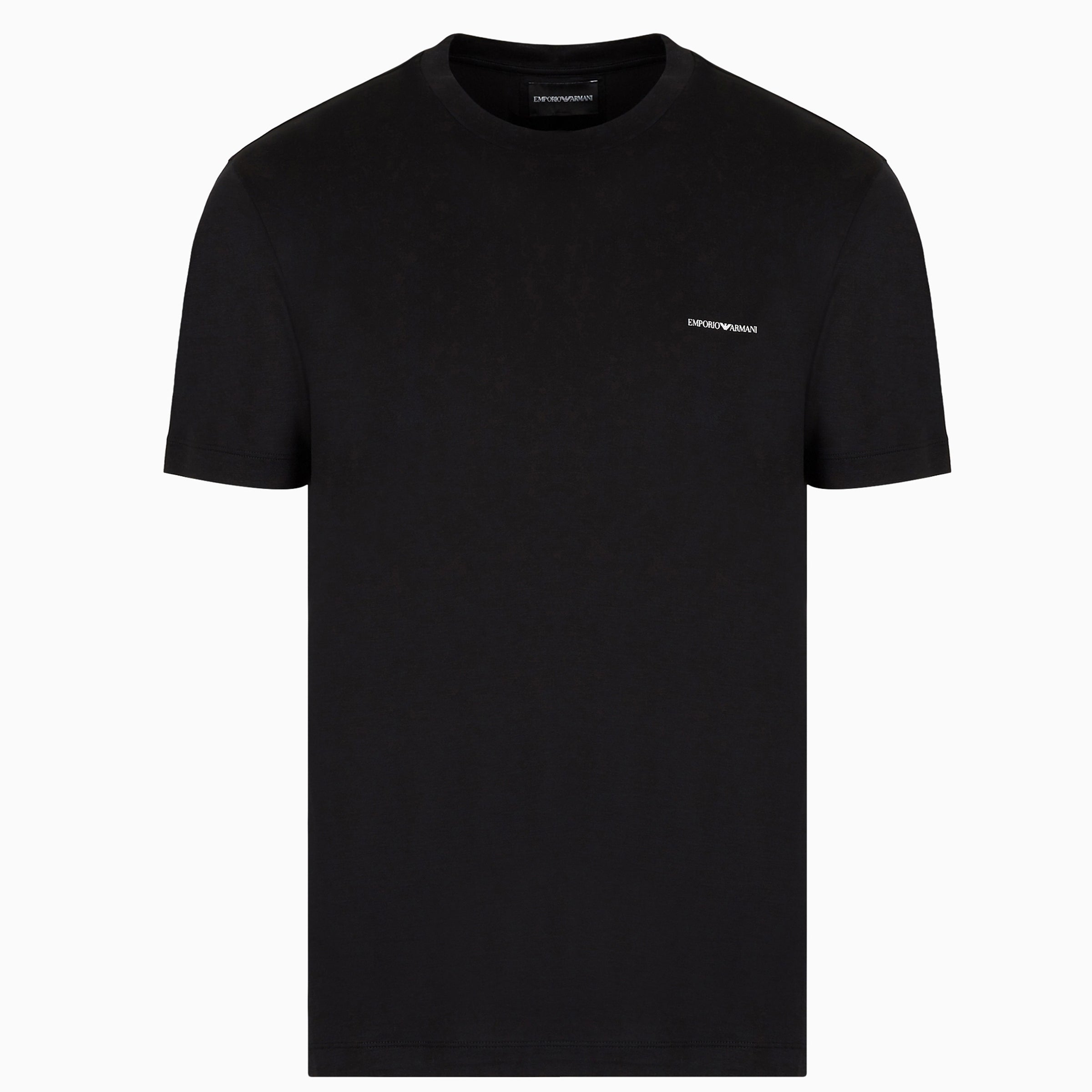 Crew-neck T-shirt with logo lettering print on the chest, made from jersey in a blend of cotton and Lyocell – a semi-synthetic fibre that has an exceptionally low impact on the environment. It is derived from eucalyptus trees and is renowned for being very durable, breathable, absorbent and wrinkle-proof. This item belongs to the Essentials clothing selection, the Emporio Armani capsule collection that is an evergreen statement of style: an ongoing collection with clean, well-designed shapes for a wardrobe that meets the demands of any season. These "essential", versatile pieces are a must-have for the male wardrobe.