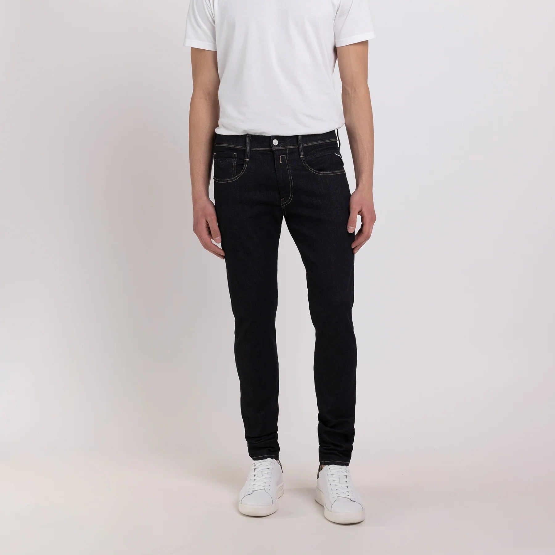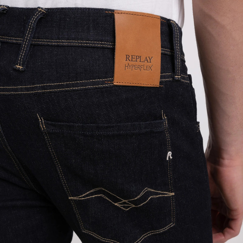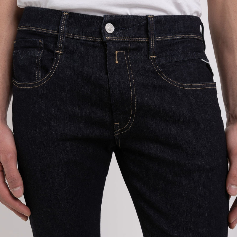 Slim-fit jeans with a regular rise and a loose leg that tapers toward the hem to offer a comfortable fit. This piece comes in 11.5-oz Hyperflex Re-Used Reform stretch cotton-blend indigo denim with raw-effect rinse wash and dry finishing on the mannequin. The coin pocket and back pockets have our iconic gull-wing stitching, one of which bears R embroidery, while one of the front pockets features a small branded insert. Zip and button fastening.