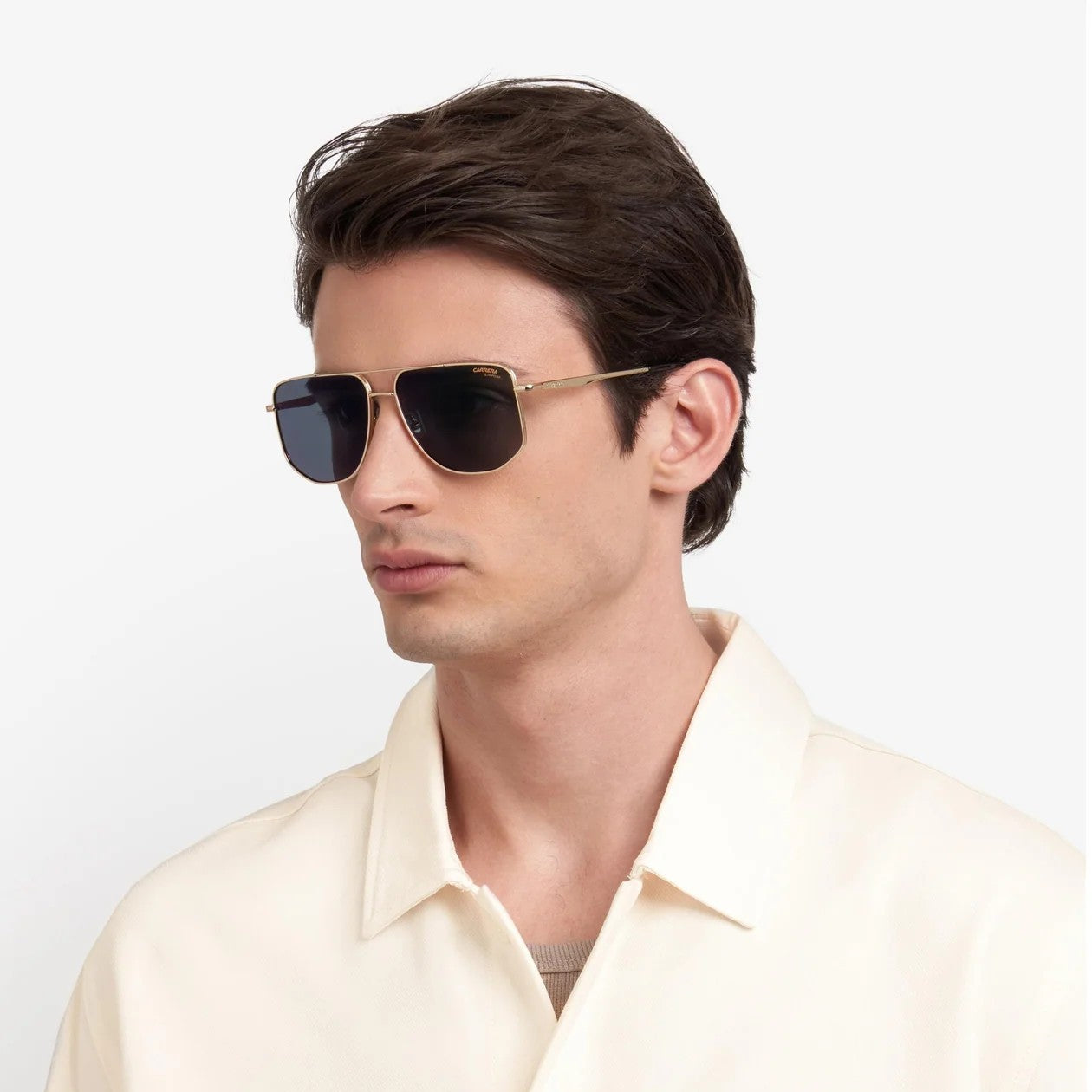 These sunglasses celebrate Carrera heritage. The double-bridge frames are timeless and the metal temples are direct from the Carrera archives. The connection to the front takes the shape of the iconic flag, and the acetate end tips come in multilayer options in the brand's colours. The gradient lenses are eternal, brought into focus by polarized or ultrapolar versions.