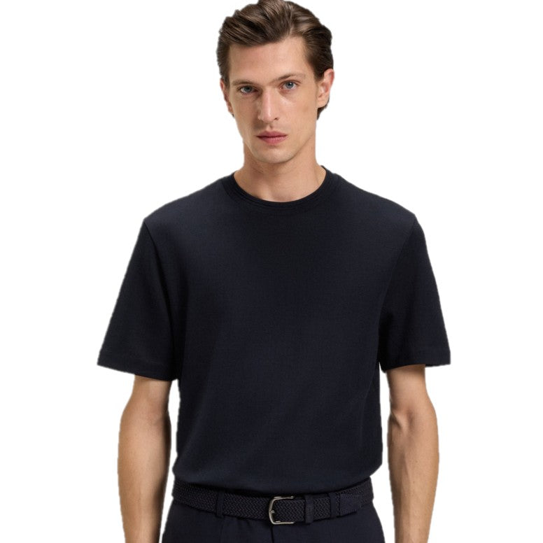 • Hugo Boss Herringbone-Structure T-shirt 50549601 10275625 404 Dark Navy
