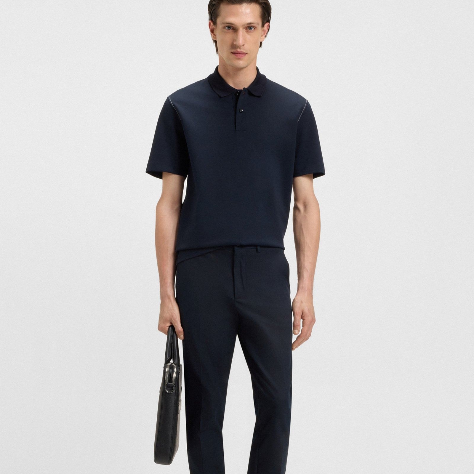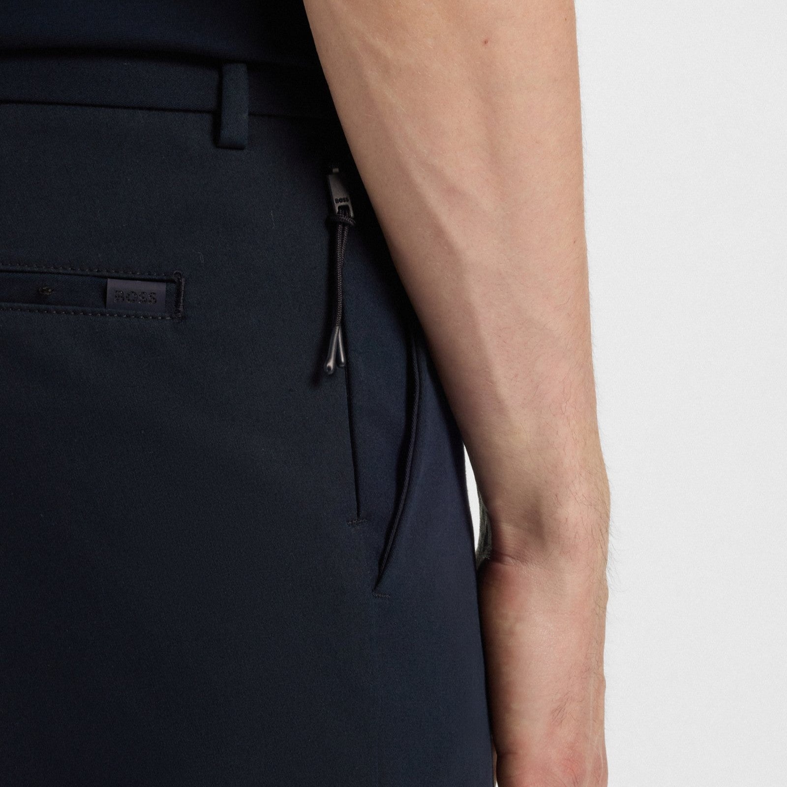 Featuring a secure zipped side pocket, these BOSS Menswear trousers are cut to a contemporary streamlined fit. Cotton-blend twill with four-way stretch.