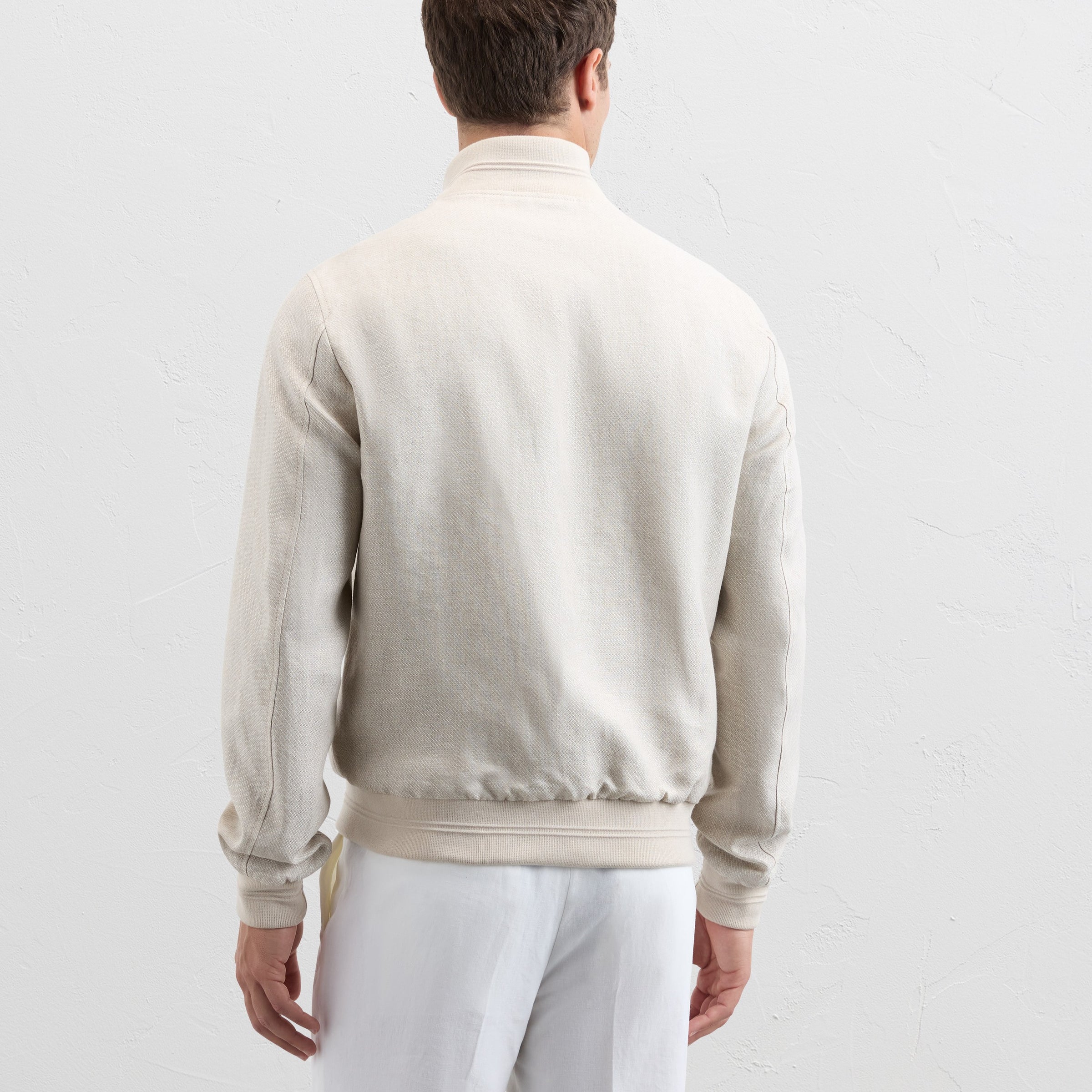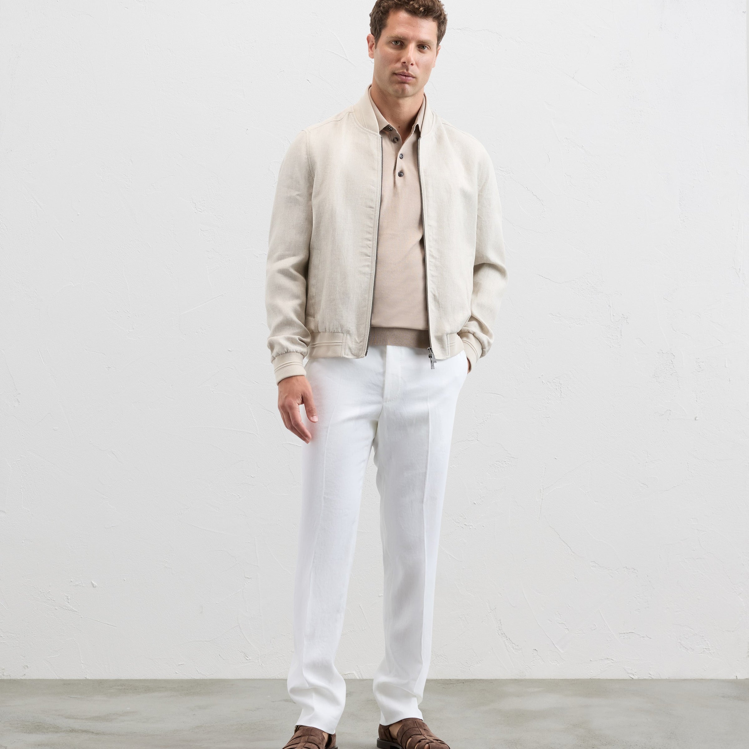A perfect blend of contemporary design and comfort defines this piece, ready to elevate any seasonal look. The bomber jacket with a 3D pattern in lightweight linen is made for those who seek refinement and functionality. A must-have for spring, this pure linen bomber in natural color with a 3D pattern and elasticated hem is perfect for cool spring days, offering breathability and a soft feel on the skin. The clean lines combine with precise details, giving the jacket a modern, versatile spirit. Enhance your wardrobe with this authentic must-have: buy it now and enjoy the versatility of a garment that combines aesthetics with unmistakable quality.