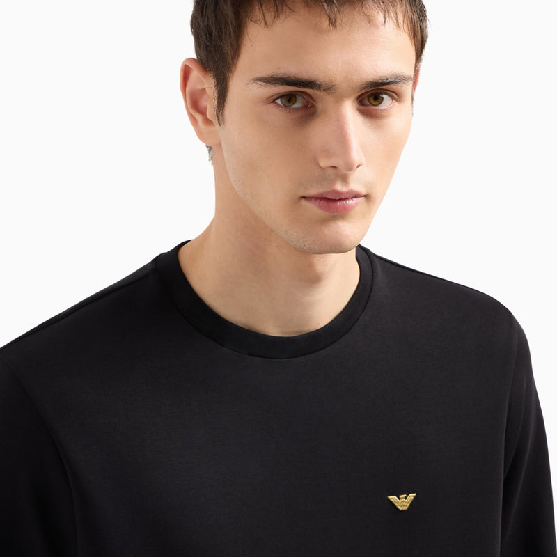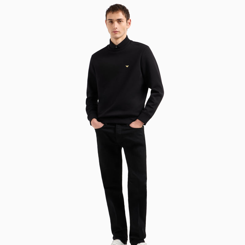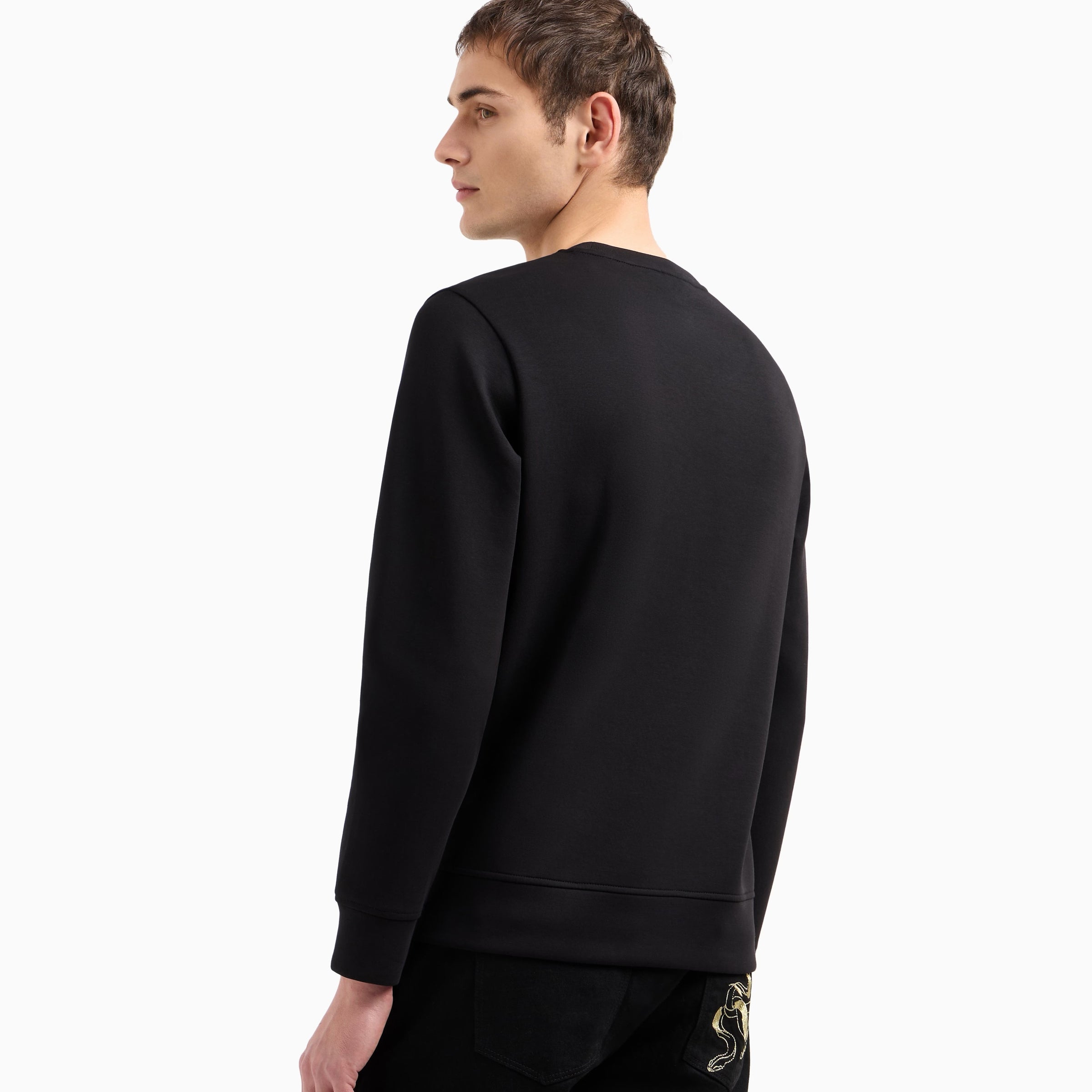 Cotton double jersey men’s crew-neck sweatshirt with collection embroidery. The item belongs to the Lunar New Year capsule collection, whose standout feature is the snake, a symbol of wisdom, stability and intuition. Tradition and superstition merge with the roots of East Asia, creating auspicious influences and symbols, characterised by luxurious embroidery on a black and red background, brightened with luminous touches of gold.