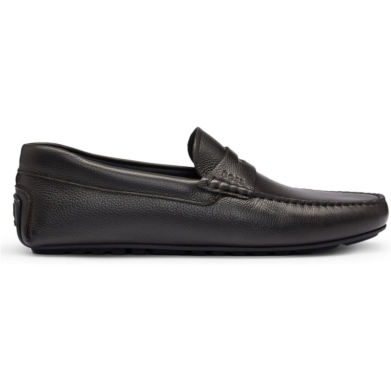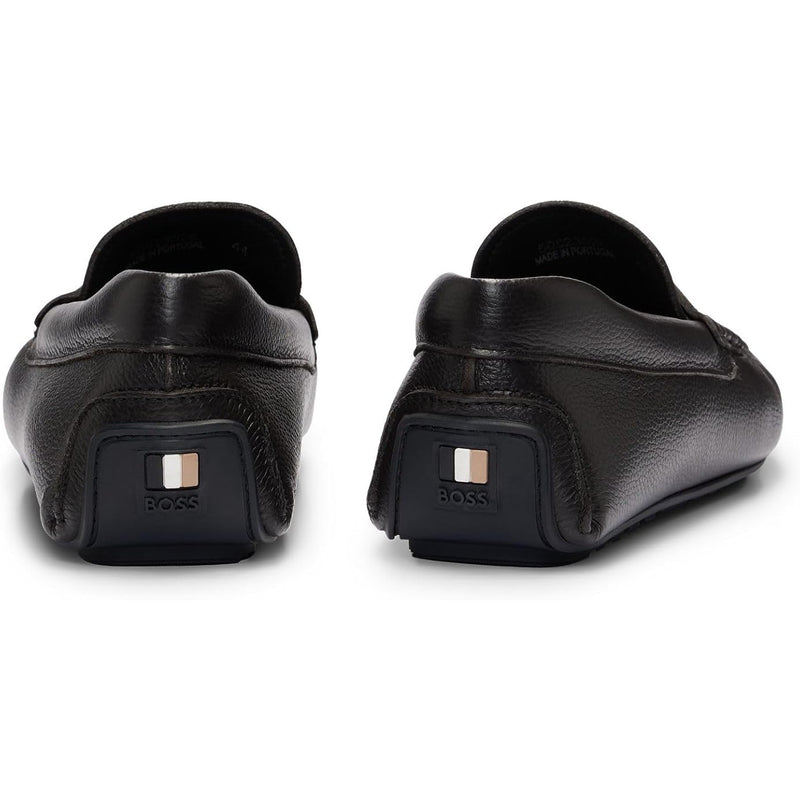 Hugo Boss Black Grained-Leather Driver Moccasins