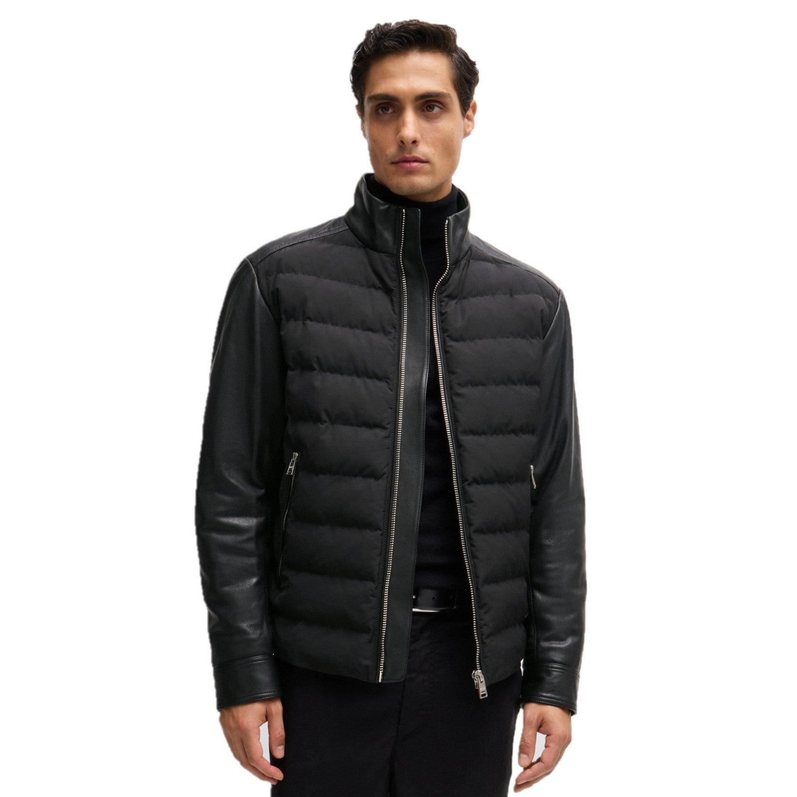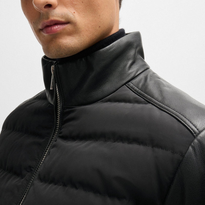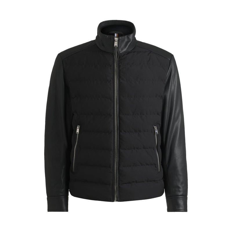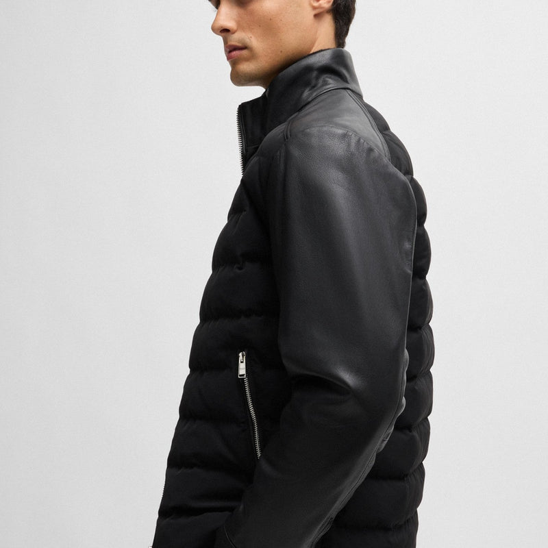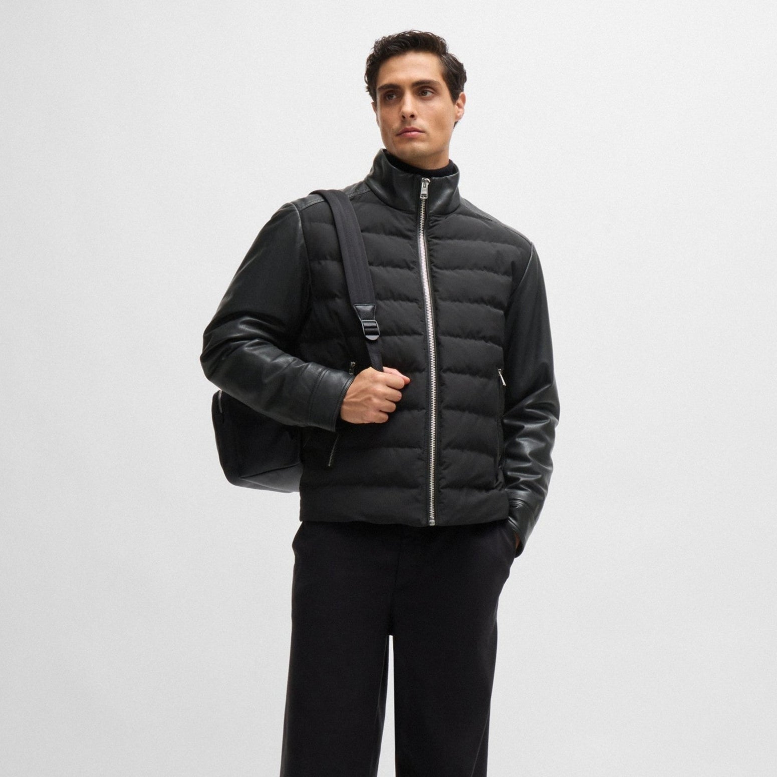 A hybrid jacket in mixed materials by BOSS. Featuring grained-leather sleeves, this piece is cut to a regular fit and filled with lightweight padding.