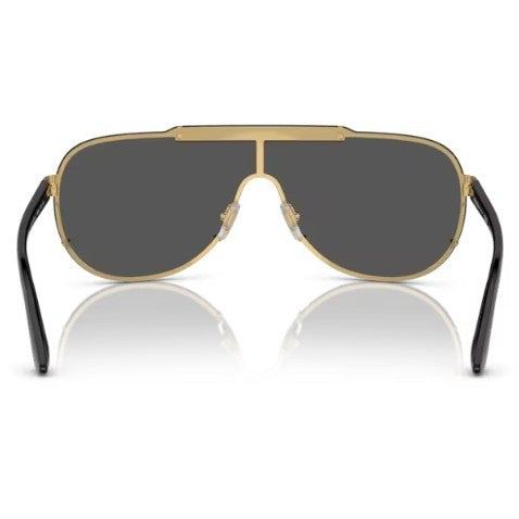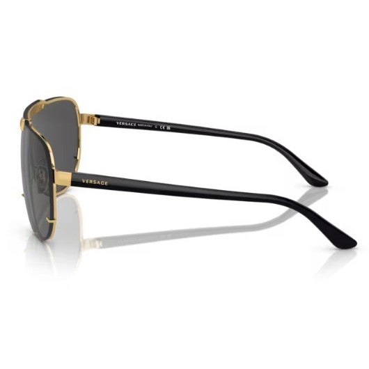 Step into the spotlight with the Versace VE2140 sunglasses. These metal pilot frames exude timeless elegance, featuring a solid dark grey lenses which perfectly complements the gold color. A testament to Italian craftsmanship and design, these sunglasses boast a polished finish that adds an extra touch of refinement to your look. Elevate your style effortlessly with this exquisite fusion of heritage and contemporary flair.